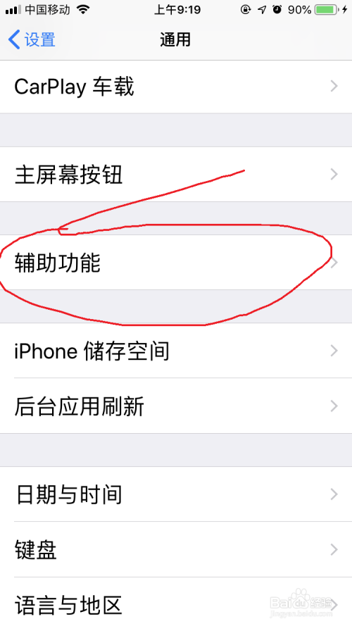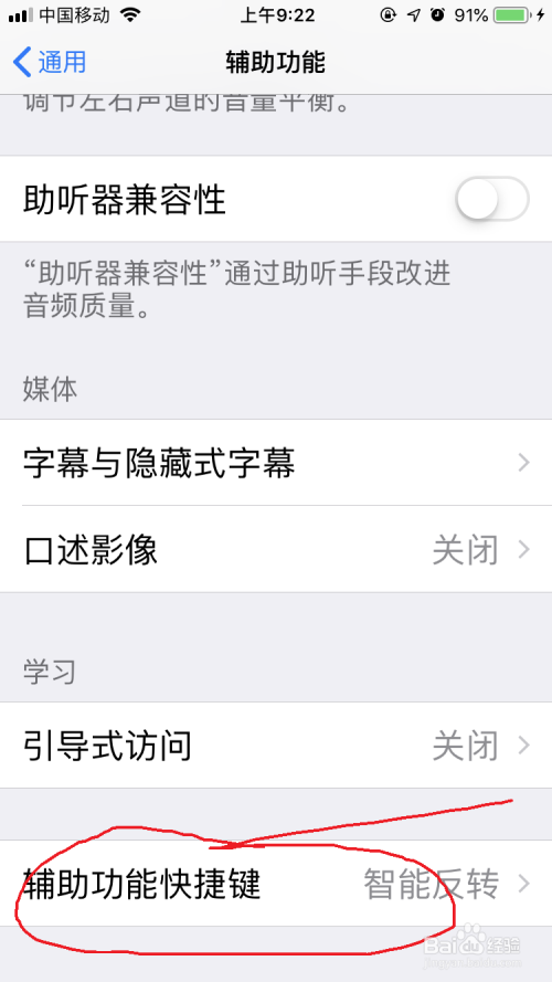 点击“辅助功能”,标的目的下滑动找到“辅助功能快捷键”。