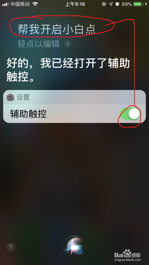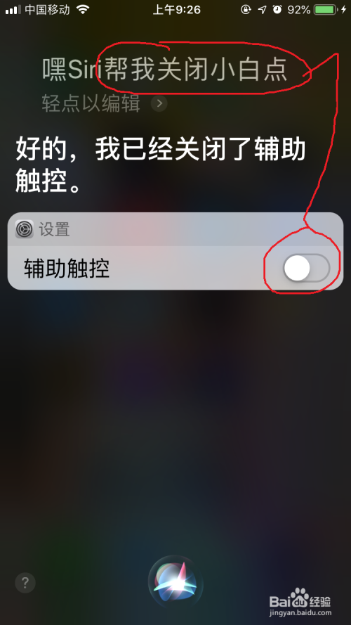 一、siri呼唤开启、封闭小白点