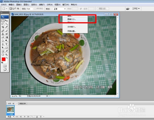 打开图片,在图片题目栏,鼠标右键选择“图片大小”