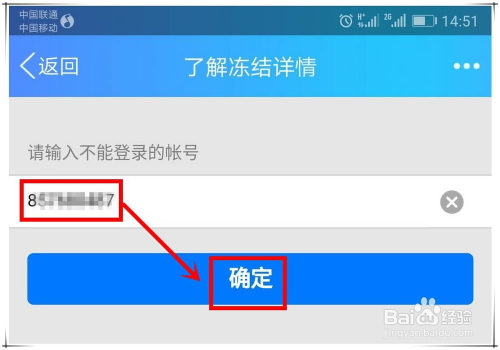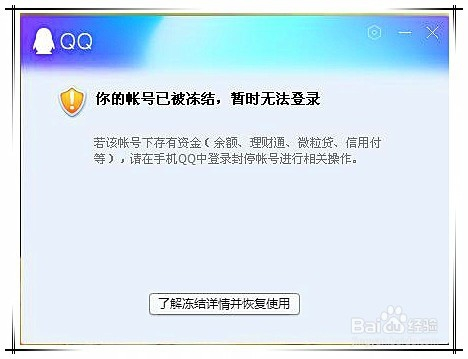在弹出窗口中,选择“去平安中间”选项,进入“领会冻结详情”窗口,在该窗口中输入要申请解封的QQ号码后,点击“确定”。
