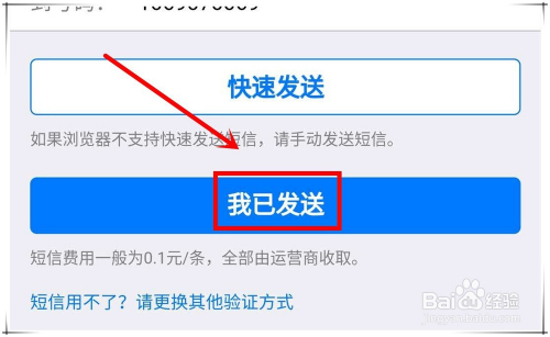 短信发送当作功后,再回到短信验证窗口,点击“我已发送”按钮。