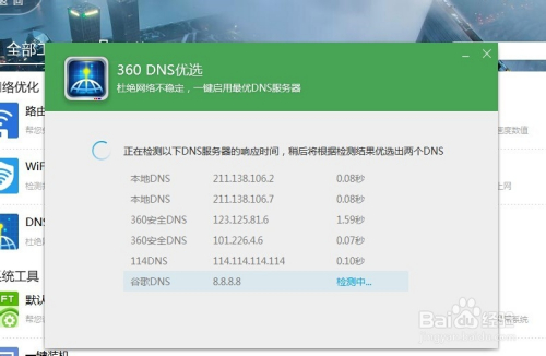 接下来,打开软件之后,点击“起头DNS优选”,软件将会检测解析速度较快的几个DNS办事器并给出最优成果。