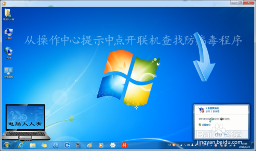 新装原装Windows 7 操作系统,因为尚未安装杀软,点开操作中间→点击联机查找防病毒法式。