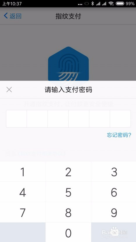 付出密码验证当作功后,就会弹出开通指纹付出当作功的提醒,如许我们今后再付出的时辰,用指纹验证就可以了。
