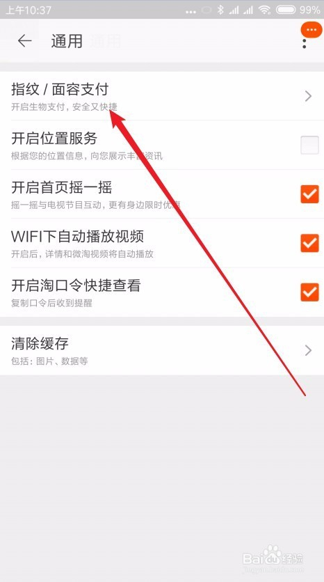 在打开的通用设置页面中,我们点击“指纹/面庞付出”菜单项。