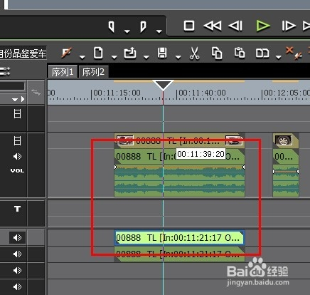 素材被拖拽到时候线上后,我们打开素材的默认的声音节制按钮。打开:倒三角、小喇叭和VOL。