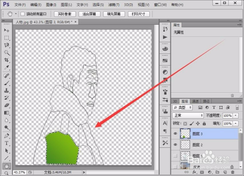 用套索东西选择人物后,同时按下键盘上的Ctrl+j键,复制选区。