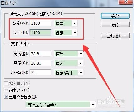 图像大小窗口中,设置q邦畿像的大小,本例为1100像素。