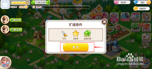 需要达到美化值10,品级9,锯子东西1把才能扩建;