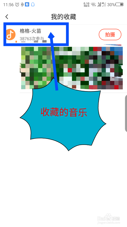 在打开的我的保藏界面,点击音乐后面的拍摄,就可以用音乐了。如图所示