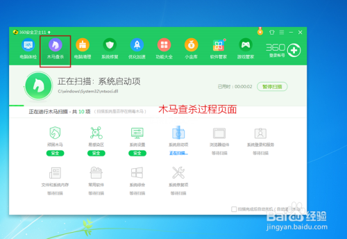修复完当作后,点选360安全卫士本家儿页面上的“木马查杀”进入查杀页面,点击“快速查杀”。
