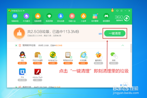 点选360安全卫士本家儿页面上的“电脑清理”,然后点击“周全清理”,完当作后点击“一键清理”。