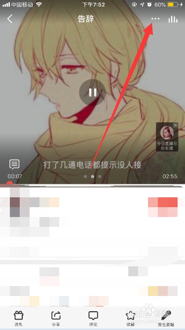 轻点歌曲播放屏幕,在歌曲页面的右上角,可以看到“···”,点击“···”。
