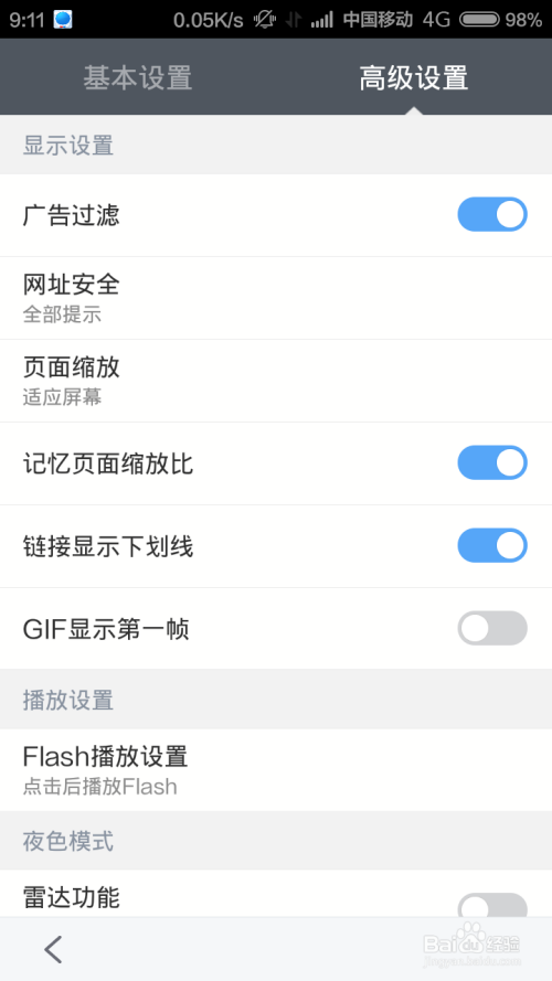在设置页面中,点击“高级设置”,进入浏览器标识设置选项。