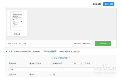 然后我们点击起头选择文件,进行文件的选择,在选择之前我们可以进行页码的输入,我们输入页码然后我们就可以进行下一步。