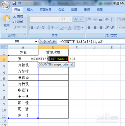 第六步:因为这一列都要计较反复值,所以我们要选中前半部门,按F4键,如许规模就是全数数据的对比了。