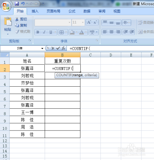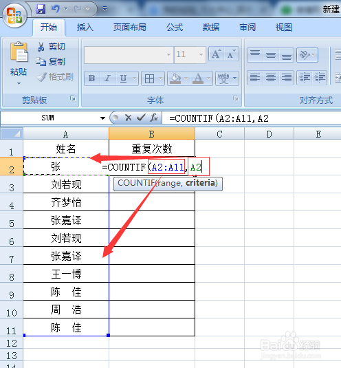 第四步:countif函数前半部门选择的是整列,逗号后半部门选择的是第一个单位格。