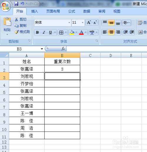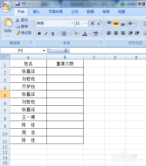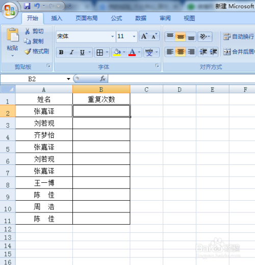 第一步:打开一个需要计较反复次数或者呈现次数的Excel表格。