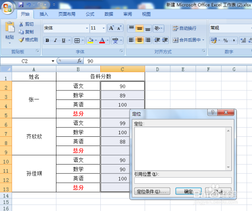 第三步:按Ctrl+G键,调出“定位”对话框。