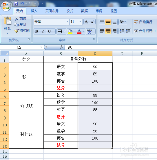 第一步:打开需要隔行乞降的Excel表格。