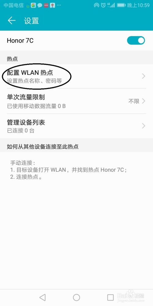 选择设置装备摆设WLAN热点设置好密码