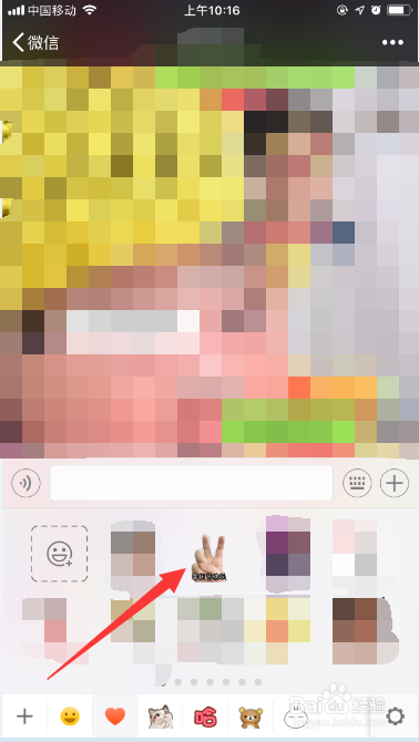 打开肆意一个老友的聊天界面,点击对话框右侧的脸色按钮。