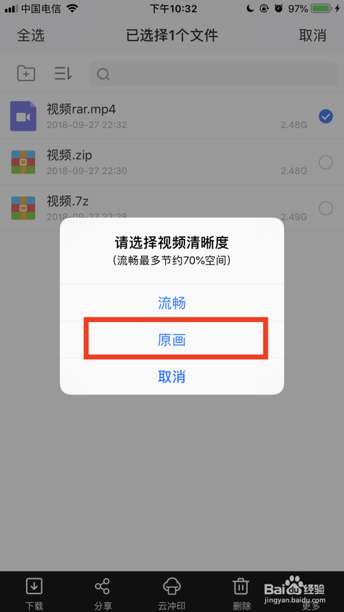 选中点窜好后缀的文件,点击下载按钮,并选择视频的清楚度为原画,然后将起头下载文件。