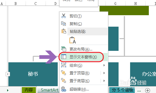 选中整个只有文字的布局图,点击鼠标右键选择“显示文本窗格”,即可弹出“在此键入文字”的对话框,这里会显示布局图中的所有文字,我们可以快速的对文字进行点窜;