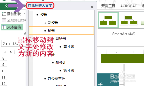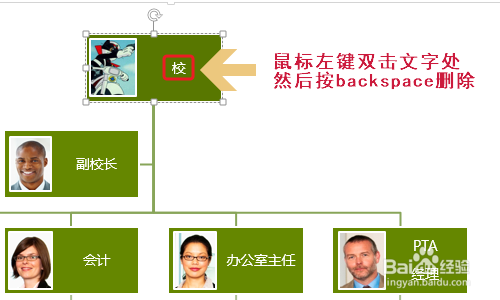 接下来就是点窜组织布局图的职位名或者机构名称了,同样的在文字的处所双击鼠标左键,按下backspace删除原先的文字,从头输入本身需要的文字内容即可;