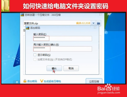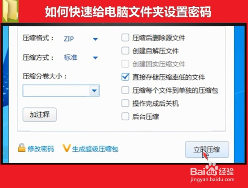 再点击【当即压缩】即可。此时在当前磁盘上就会增添一个压缩文件。今后打开这个文件就需要输入【设置密码】。