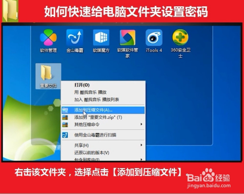 右键点击该文件夹,在快捷下列菜单中选择单击【添加到压缩文件】。