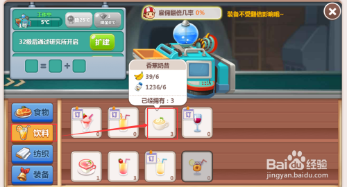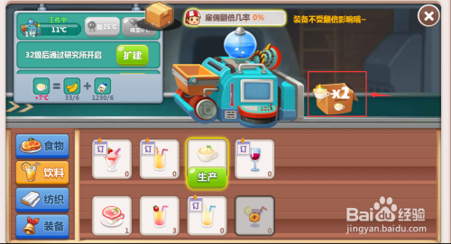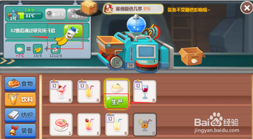点一下饮料,在右边呈现可以出产的各类饮料;