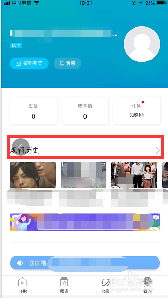 点击我的,进入我的本家儿页。在我的本家儿页下有一栏【不雅看汗青】,点击查看我的所有不雅看汗青。