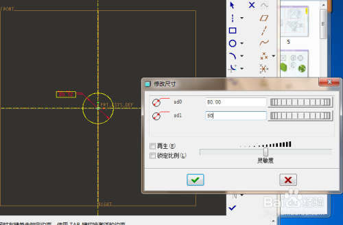 点击草绘平面,绘制两个齐心圆,并点窜圆的直径