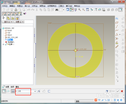 以right平面为基准,偏移120新建基准平面,并以此基准面作草绘平面,绘制图形