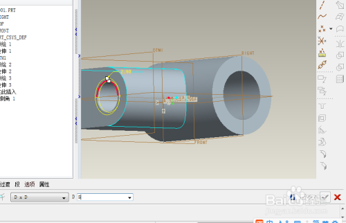 将草绘好的平面拉伸至前面完当作的柱体外侧面,