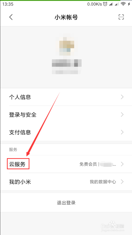 点击“小米账号”,打开“云办事”。