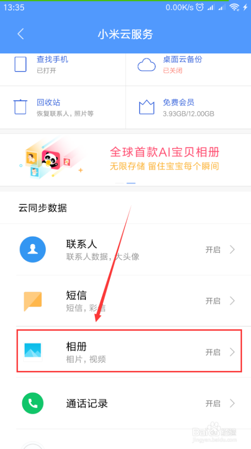在“小米云办事”中打开“相册”。