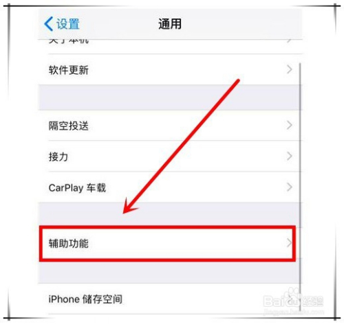 在设置页面,找到并点击“通用”选项,然后在通用设置页面,找到“辅助功能”选项,点击进入。