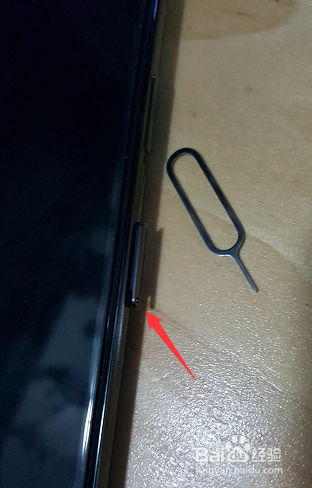 关机后首先用取卡针将卡槽顶出,如下图所示