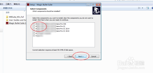 在图一选择你电脑上安装的软件,想要加载插件到软件,选择好了点击下一步。点击这个install。