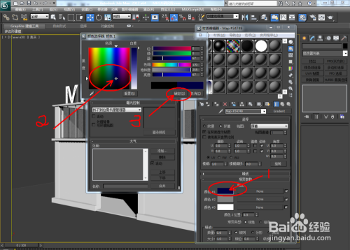 对渐变材质球的贴图颜色进行设置,别离设置好颜色1、颜色2、颜色3;