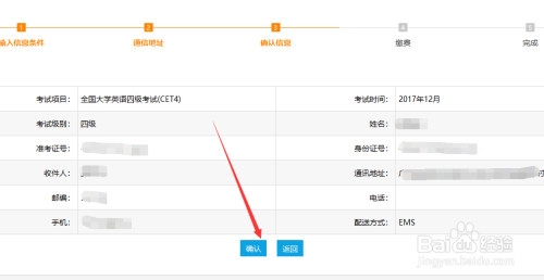 输入我们地址和通信信息,输完后点击【确定】,确认信息无误后点击【确认】