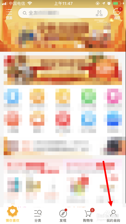 首先仍是在手机上打开并登录苏宁易购App,并在首页面点击右下角的 我的易购 。
