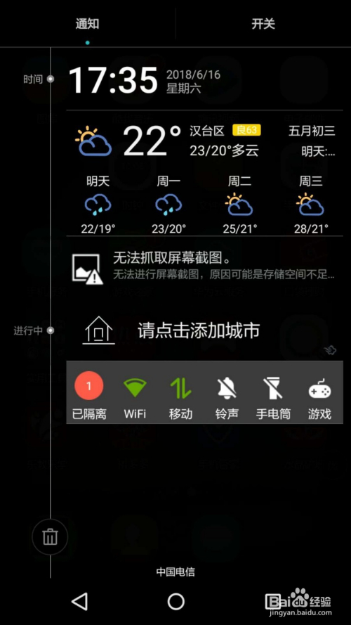 先来看下问题描述,在手机上截屏时,我们一般用按住侧面的本家儿开关机键和音量减小键来进行,但有时,因为手机有自带的“手机管家”,对部门功能进行了优化停用,会呈现“无法抓取屏幕截图”的成果,如下图所示