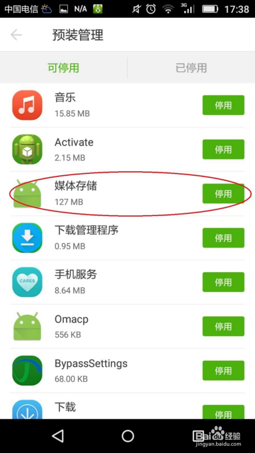 触摸上部的“已停用”菜单,打开,鄙人面找到“媒体存储”项,触摸右边的“启用”按钮