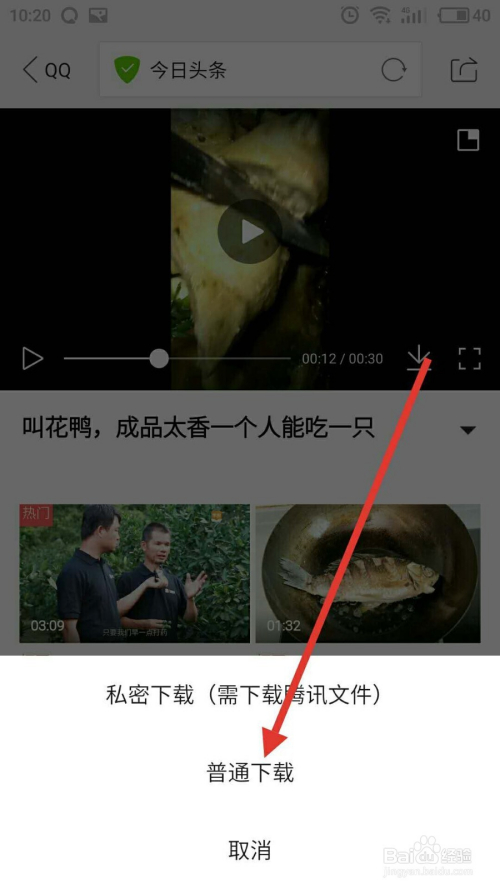 用QQ浏览器打开这个视频后,点击播放,大要等一分钟摆布,就可以看到右下角有一个下载的图标,点击“下载”