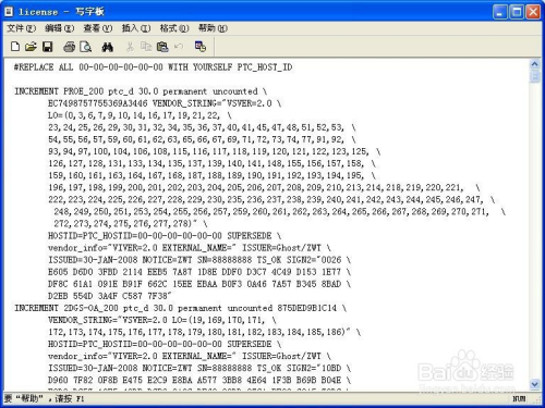 有个’License.bin ‘文件,--右键---打开体例---选择’记事本‘