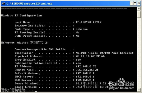 Physical Address:XX-XX-XX-XX-XX-XX 那一栏就是你的网卡MAC地址