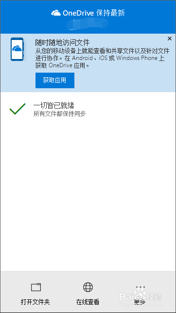 第一个功能是打开文件夹,这是将OneDrive与当地同步的网盘文件夹打开。我们也可以将文件移动到这个文件夹中,如许会主动上传。